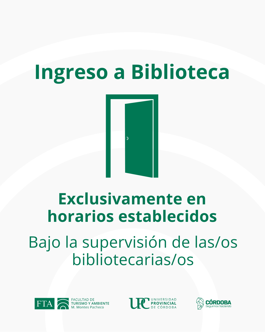 El acceso a la Biblioteca se realiza exclusivamente en los horarios establecidos y bajo la supervisión de los/as bibliotecarios/as. En caso de que el personal no se encuentre presente, no será posible el ingreso.